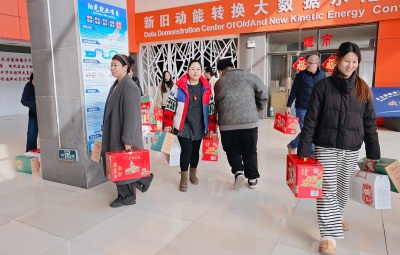 活动现场,一箱箱满载祝福的年货整齐码放,红金相间的包装点缀出浓浓的年味,从鲜香腊味到精选坚果,从实用好物到新春福礼,每一份年货都经过精心挑选,承载着公司对员工的深切关怀与美好期许。随着年货陆续到位,原本有序的现场多了几分热闹与温情。